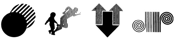 下圖3三個(gè)箭頭一實(shí)二虛,箭頭方向一下二上,但在質(zhì)感上是均衡的。箭頭是方向和速度的象征,是現(xiàn)代標(biāo)志經(jīng)常采用的造型材料之一。