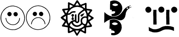 下圖1中,兩個(gè)抽象化的面孔均由圓的相關(guān)部分—圓圈、國(guó)點(diǎn)和國(guó)弧組成。圓弧一下一上,形成了喜怒兩種不同的情感。